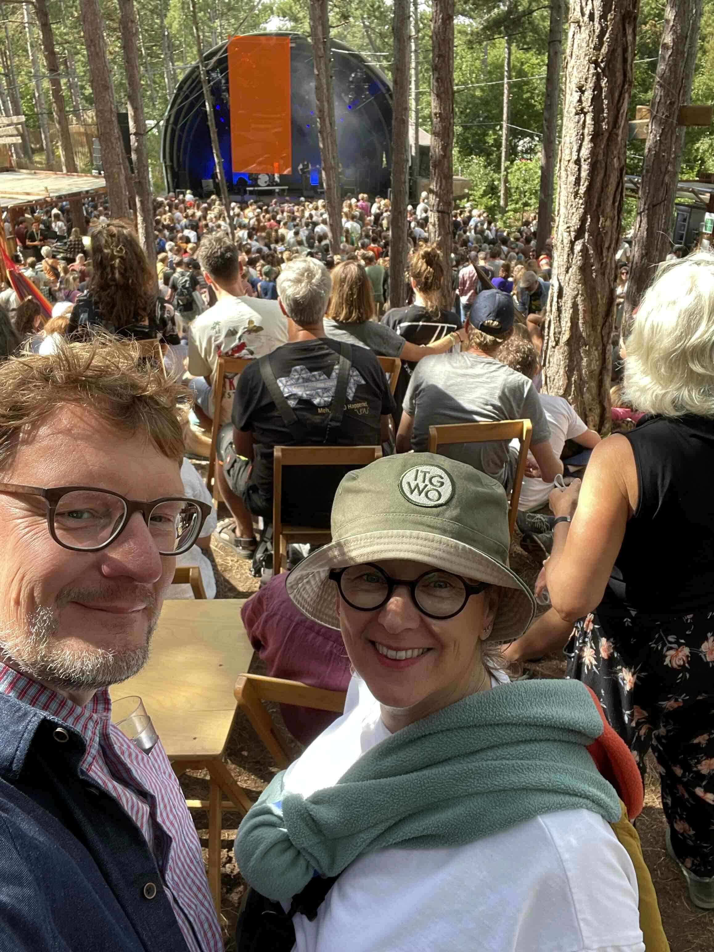 "Voor ons is ITGWO net als kerst," zegt Annemarie met een glimlach. "Een vast moment in het jaar, iets waar je je op verheugt, waar je bij hoort." Ze is 56, woont met Dennis in Amsterdam en werkt voor de overheid in Zwolle. Dennis, 53 jaar, is consultant bij een internationaal IT-bedrijf, met een sterke focus op duurzaamheid. Beiden reizen dus veel, al is dat door hun werk de laatste jaren flink veranderd. "Thuiswerken is eigenlijk de norm geworden," vertelt Dennis. "En dat past ook weer goed bij hoe we kijken naar de wereld. Minder uitstoot, bewuster leven." Diezelfde overtuiging maakt ook dat ITGWO hen aanspreekt. "Het festival heeft een voorbeeldfunctie," zegt Dennis. "Op het gebied van duurzaamheid, maar ook in hoe het georganiseerd is. Geen massaliteit, maar echtheid. Met respect voor natuur, kunst en cultuur."